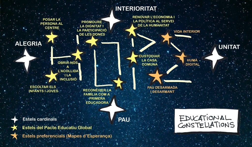Les constel·lacions educatives catòliques són una imatge inspiradora de com la tradició i el futur es poden entrellaçar sense contradiccions: una tradició viva que s’estén cap a noves formes de presència i servei. Les constel·lacions no es redueixen a concatenacions neutres i planes de les diferents experiències. En lloc de cadenes, ens atrevim a pensar en les constel·lacions, en el seu entrellaçament ple de meravelles i despertars. En elles resideix aquesta capacitat de navegar entre els desafiaments amb esperança, però també amb una revisió valenta, sense perdre la fidelitat a l’Evangeli.
